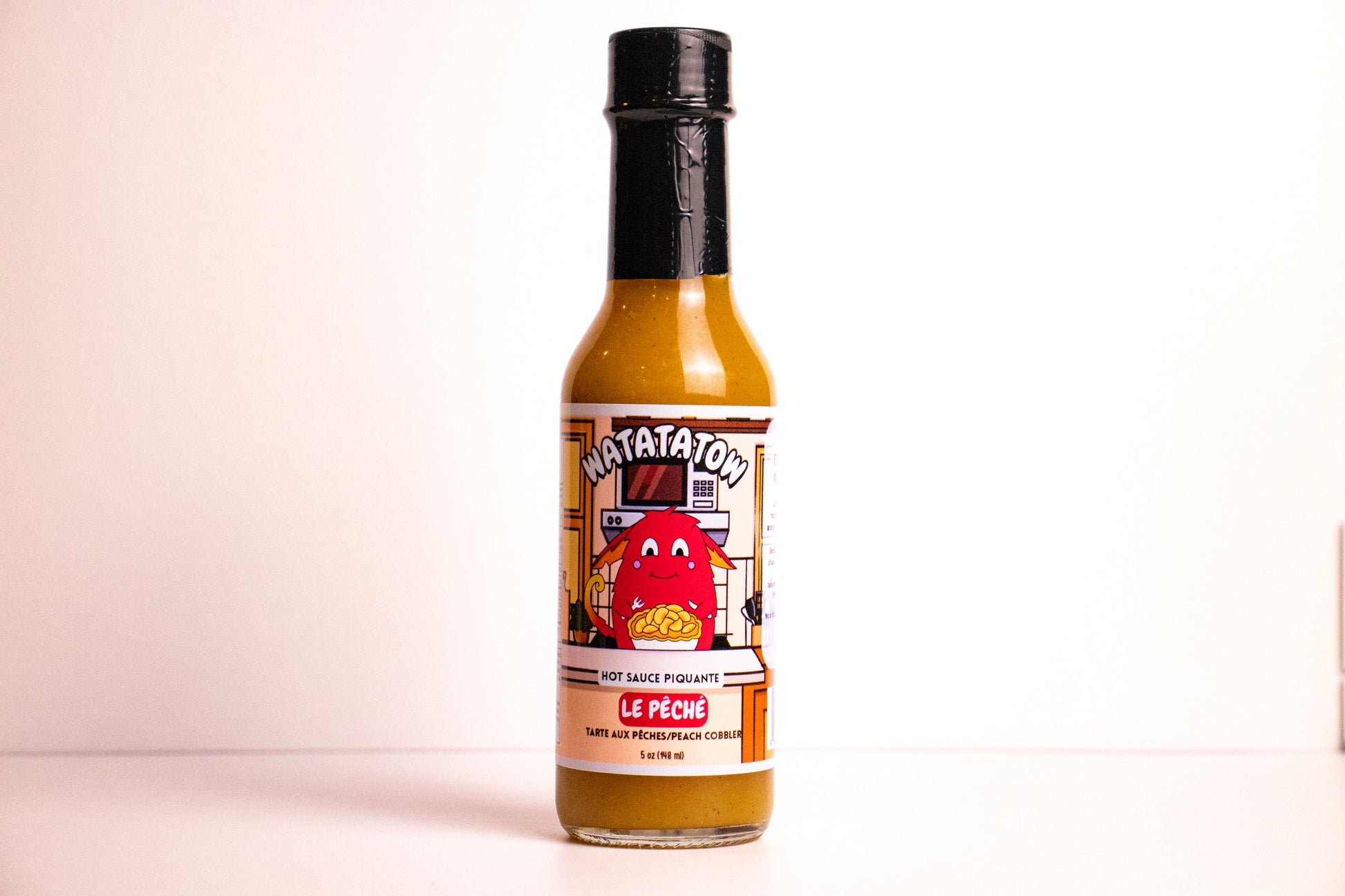 Indulge in the heavenly flavors of our peach cobbler inspired hot sauce! Elevated with hints of cinnamon, nutmeg, and all spice, this sweet treat has a unique twist, with a level 2 spiciness that slowly builds thanks to our secret ingredient - scotch bonnet peppers. Get ready for a delicious and playful experience!